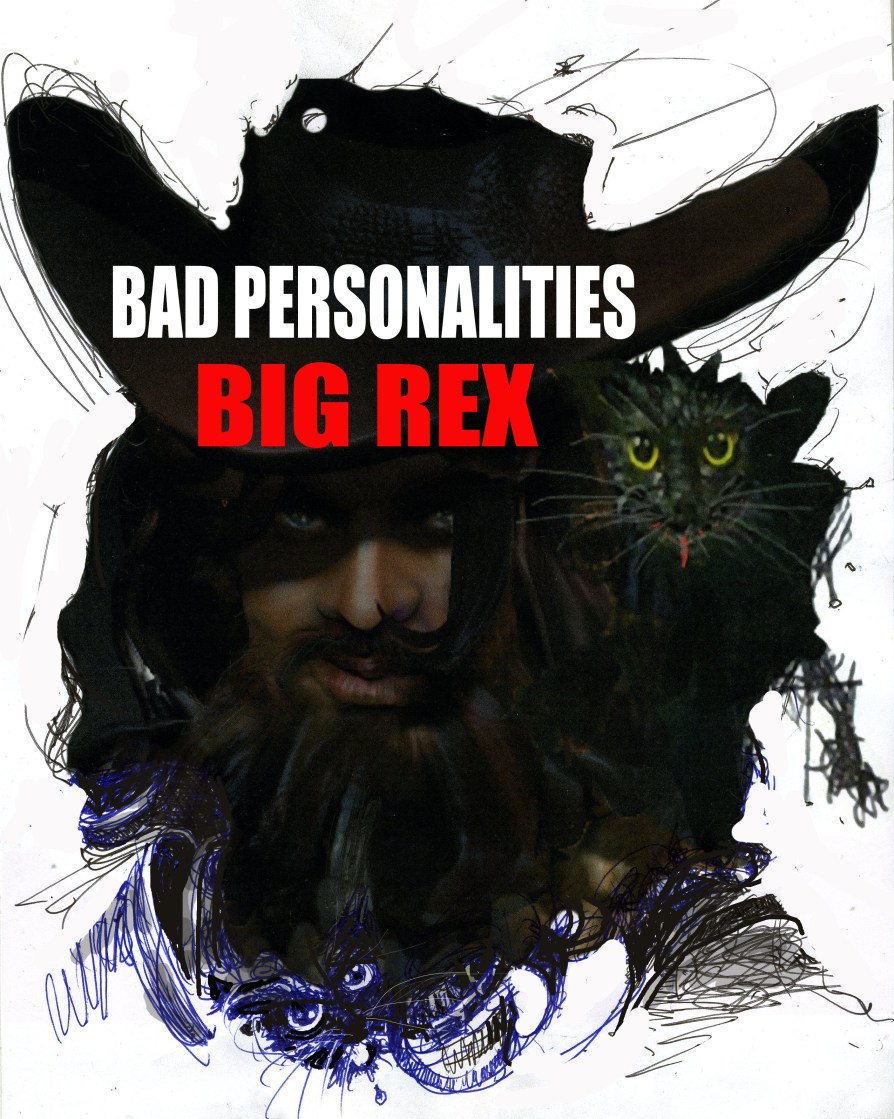 Passed, a grave yard one day he’ll make his bed. When we look at him, we are seeing, it’s another kind of version of Big Rex himself. A different self, a self similar but different person? As he gets closer, he’s got the same facial features, same beard, same cold eyes that seemed capable of looking right into your soul. But, dressed with a bullet holed cowboy hat on his head, looking like he came out of the ground dead, nasty and mean. And he says : ]